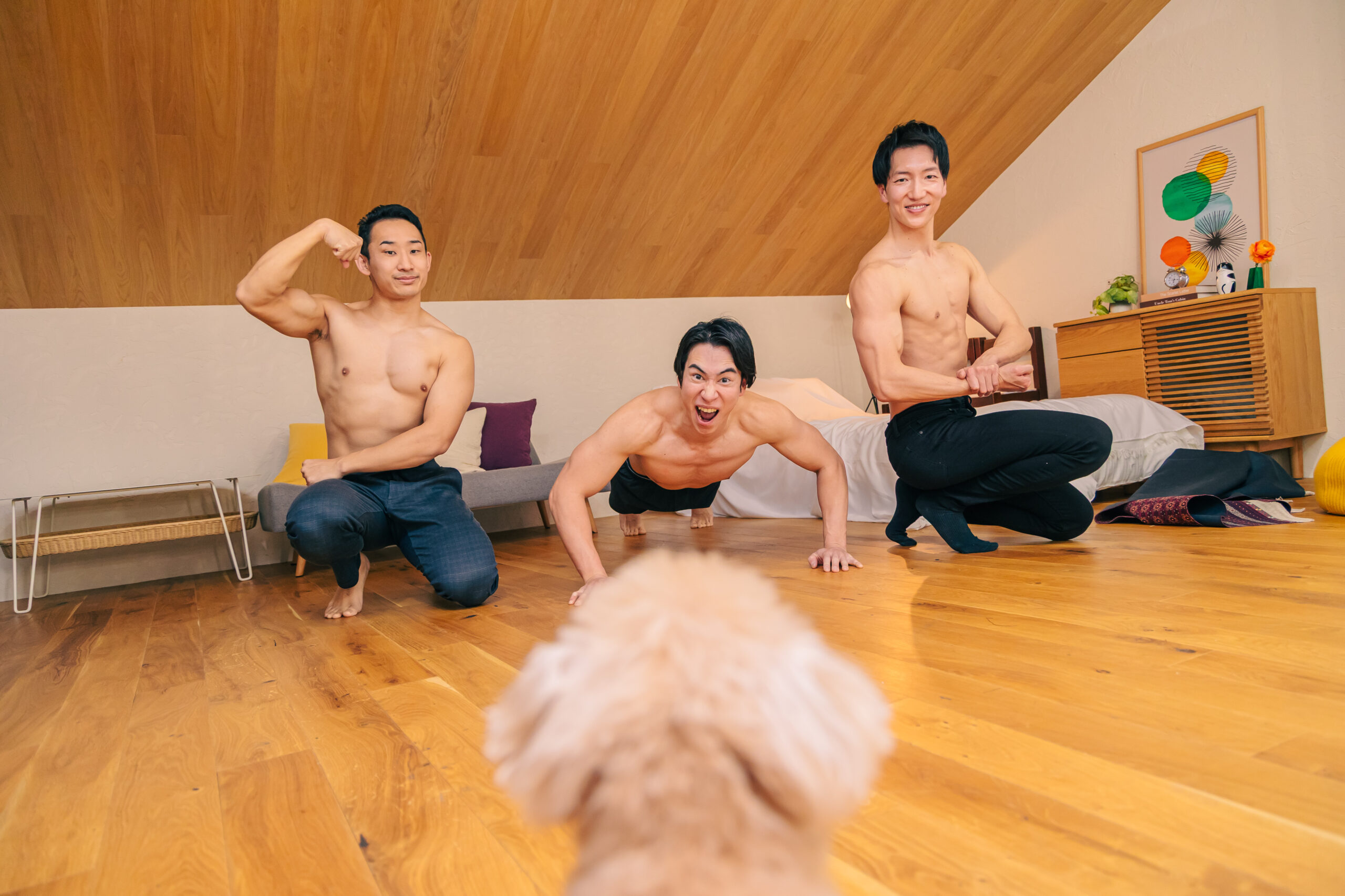 動物とマッチョのフリー素材はこれまでエミュー、水牛、ゾウ、猫たちと撮影してきました!そして、今回は犬!ワンちゃんとマッチョのフリー素材です。YouTubeでも活躍するトイプードルの小殿くんとコラボしました!